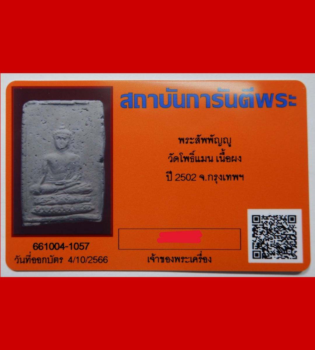 พระสัพพัญญู วัดโพธิ์แมน เนื้อผง ปี2502 กทม.พร้อมบัตรรับรอง