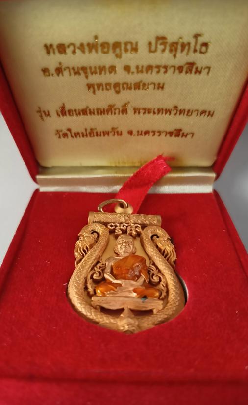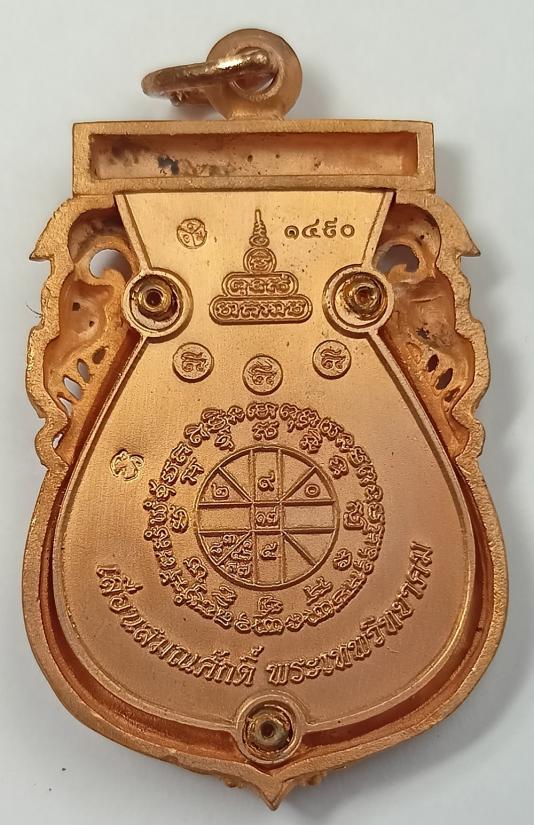 เหรียญเสมาฉลุ พุทธคูณสยาม (เลื่อนสมณศักดิ์ พระเทพวิทยาคม) วัดใหม่อัมพวัน ปี54 เนื้อทองแดงลงยาจีวรเหลือง เบอร์ 1490 พร้อมกล่องเดิมครับ