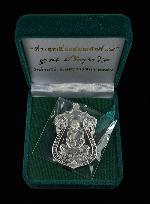 เหรียญหลวงพ่อคูณ รุ่นที่ระฤกเลื่อนสมณศักดิ์ 47 เนื้อเงิน หมายเลข17 (เลข2หลัก)สวยๆ พร้อมกล่องเดิมจากวัด
