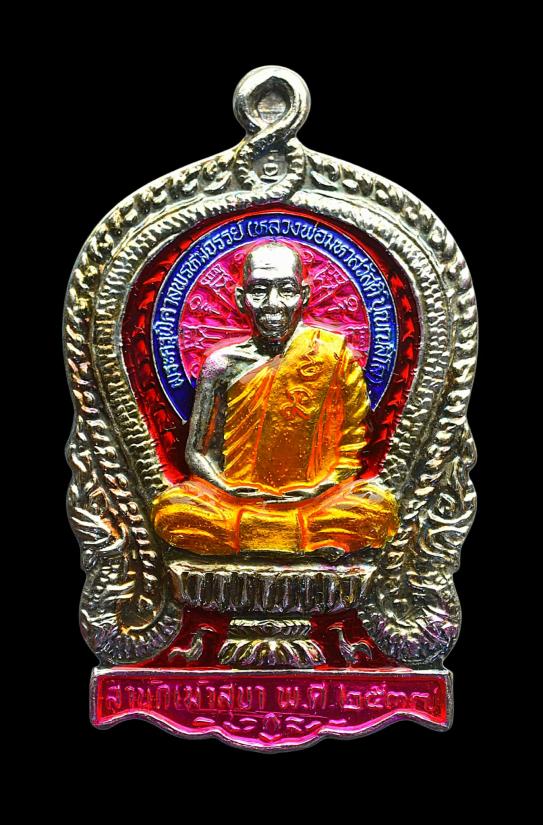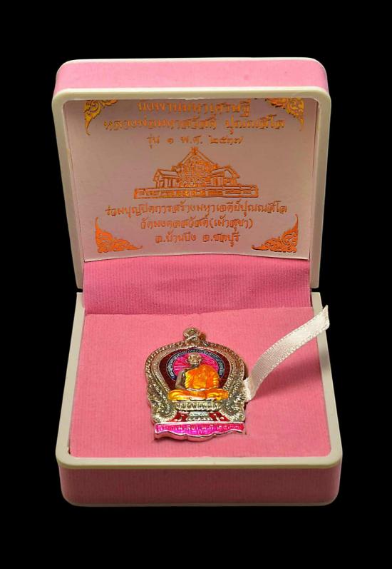 เหรียญพิมพ์นั่งพาน รุ่น 1 หลวงพ่อสวัสดิ์ ปุณณสีโล เนื้อเงินลงยาสีชมพู หมายเลข 7 วัดใจเคาะแรก!!!