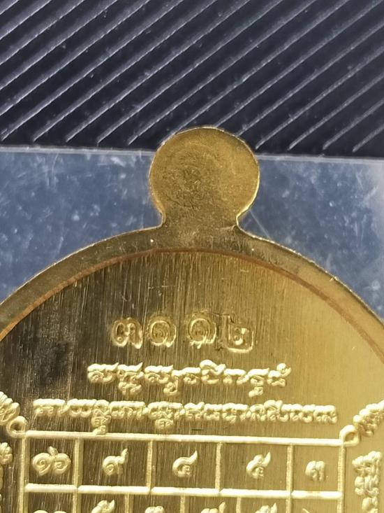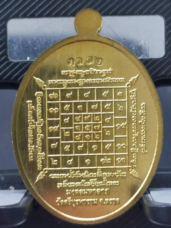 รายละเอียด หลวงปู่บัว รุ่น มงคลมหาลาภ เหรียญนั่งโต๊ะเต็มองค์ หมายเลข 3112 เนื้อเหลือง พร้อมกล่องเดิม
