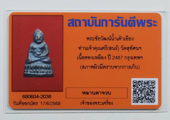 พระชัยวัฒน์องค์นี้ผ่านการจุ่มน้ำยาดำ เนื้อออกสีน้ำตาลปนดำ วรรณะด้านในเหลืองอมเขียว สภาพน่ารักเดิมๆ มีคราบเบ้าตามซอก มีพระชัยวัฒน์อาราธนาติดตัวทำอะไรก็ชนะทุกทิศ ถือว่าเป็นพระชัยวัฒน์อีกรุ่นที่น่าสะสมของวัดสุทัศน์ครับ