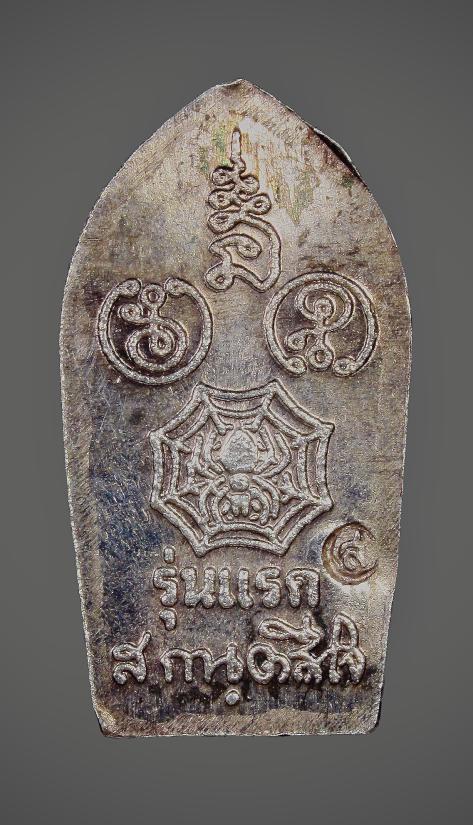 ปรกใบมะขามเนื้อเงินรุ่นแรกหลวงปู่สุภา หลังยันต์แมงมุมดักทรัพย์
