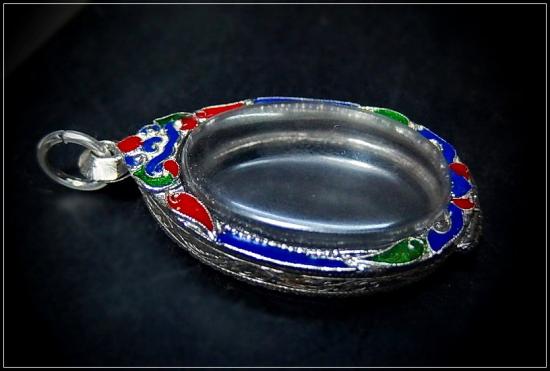 ตลับเงินผสมมือ2ใส่เหรียญรูปไข่ลงยาขนาดตามภาพถ่ายเคาะเดียวครับ