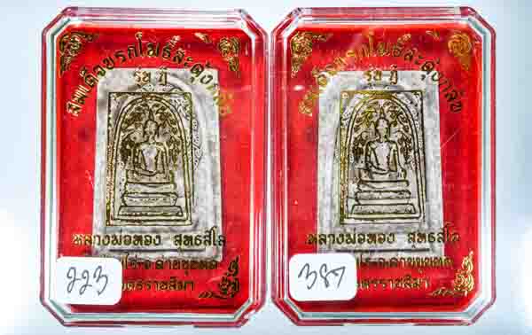 *2องค์ สมเด็จปรกโพธิ์สะดุ้งกลับ รุ่นฎี หลวงพ่อทอง วัดบ้านไร่ แผ่นหมายเลขเงิน ปลุกเศก 19 วัน เคาะเดียวแดง* |