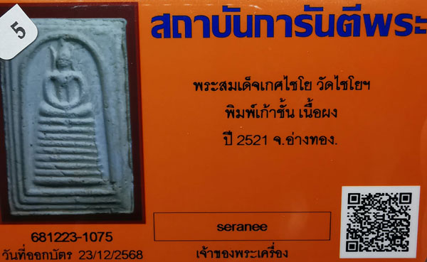 พระสมเด็จเกศไชโย วัดไชโยฯ พิมพ์เก้าชั้น เนื้อผง ปี2521 จ.อ่างทอง + บัตรG-pra สภาพสวยเดิมค่ะ |
