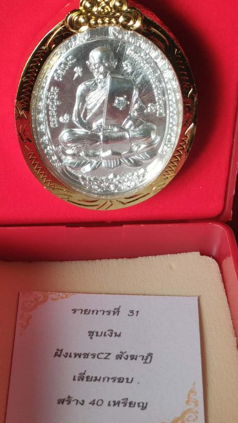 เหรียญ"เปิดโลก" หลวงปู่ฝั้น ปสาโท วัดศรีถมอรัตนฺ์(วัดหน้าผา)เพชรบูรณ์ เนื้อชุบเงิน ฝังเพชรczสังฆาฏิ ฝังพลอยเต็มสังฆาฏิ ตอก"พิเศษ"เลี่ยมกรอบทองยกซุ้มหัวสิงห์ หมายเลข ๑๓ พร้อมกล่อง เลข lucky number |