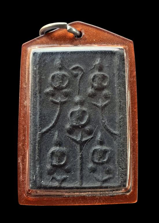 วัดใจ พระเผง หลวงพ่อเงิน วัดบางคลาน พิมพ์พระเจ้าห้าพระองค์ ปี 15 เนื้อผงใบลาน เลี่ยมเก่า |