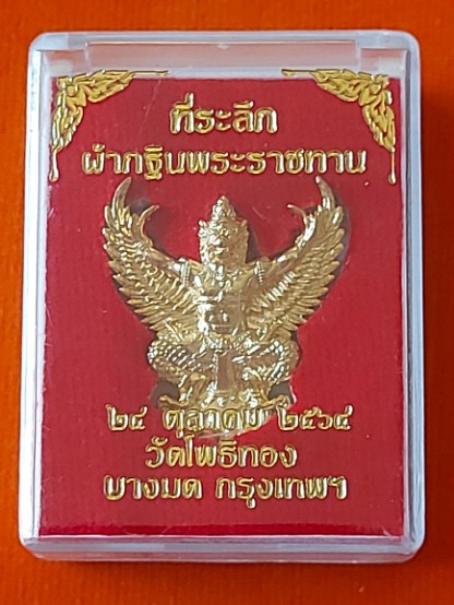 เหรียญครุฑ หลวงพ่อวราห์ วัดโพธิทอง บางมด กรุงเทพฯ ที่ระลึกผ้ากฐินพระราชทาน ปี 2564 เนื้อกะไหล่ทอง ตอกโค้ด พร้อมกล่องเดิม |