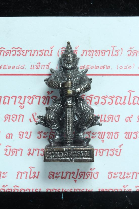** วัดใจ 100 เดียว **รูปหล่อท้าวเวสสุวรรณ พิมพ์หน้ายักษ์ หลวงพ่ออิฏฐ์ วัดจุฬามณี เนื้อรมดำ ปี 2558 สมุทรสงคราม สภาพสวยเดิมๆไม่ผ่านการใช้ พร้อมใบคาถา//y13 |