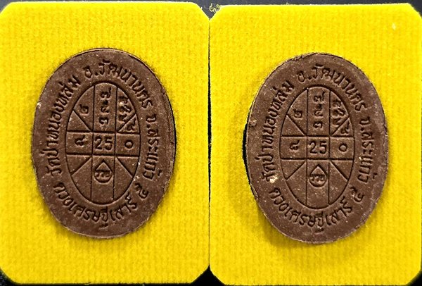 (2 องค์) . สภาพสวย . เท่าไหร่ เท่านั้น ... พระผงดวงเศรษฐี (บล็อกแรก) หลวงปู่หมุน เนื้อผงน้ำพี้ ปี 2556 + กล่องเดิม |