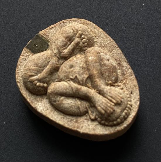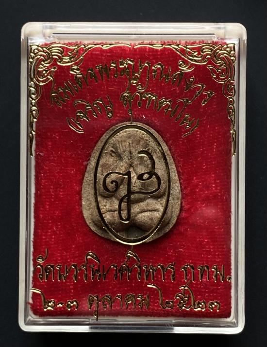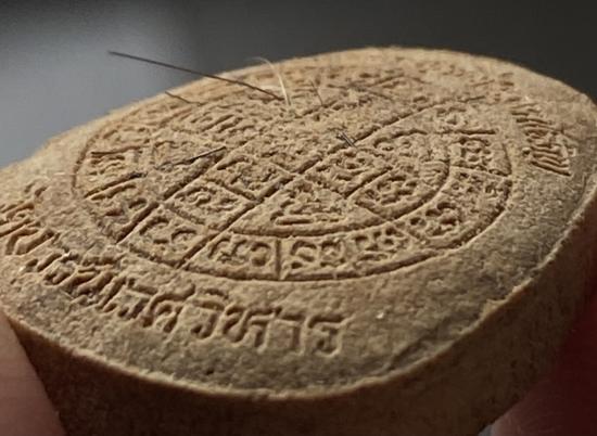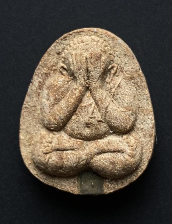 พระปิดตายันต์ดวงเล็ก ปี2523 สมเด็จพระญาณสังวร (เจริญ) วัดบวรนิเวศ_(เนื้อผงเกสร มีเส้นเกศาเยอะ)_มีกล่อง_