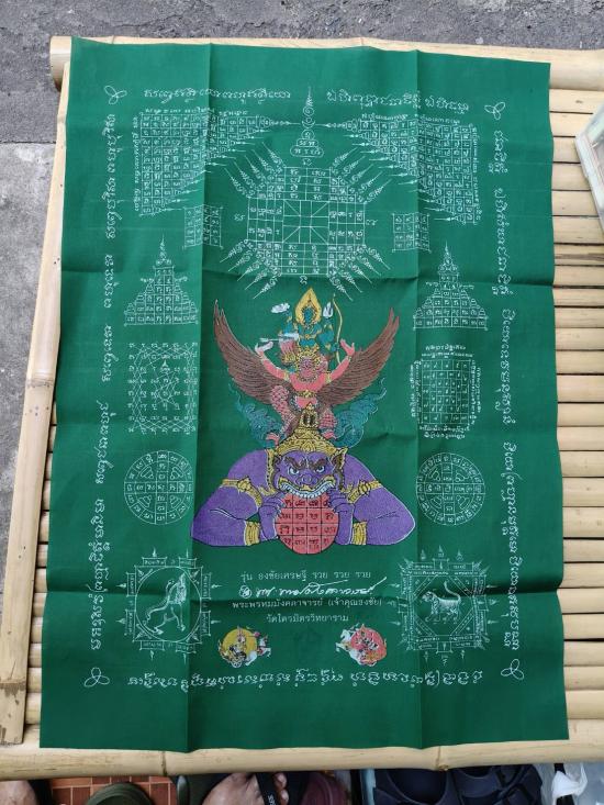 "เคาะเดียว"ผ้ายันต์พระนารายณ์ทรงครุฑ วัดไตรมิตร รุ่นธงชัยเศรษฐี รวยรวยรวย เขียวเหนียวทรัพย์ |