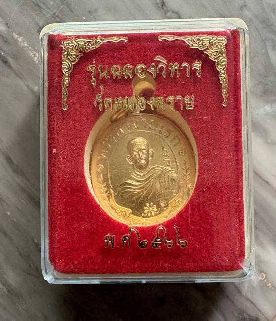 เหรียญปั๊มครึ่งองค์ พิมพ์เล็ก พระอาจารย์อดิเรก อนุตตโร วัดหนองทราย จ.สุพรรณบุรี รุ่น ฉลองวิหาร ปี2566 เนื้อกะไหล่ทอง |