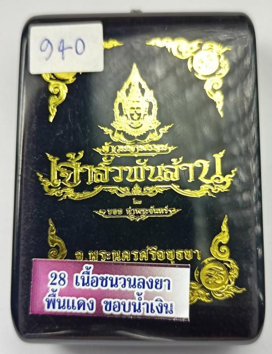 เหรียญท้าวมหาพรหม เจ้าสัวพันล้าน (จัดสร้างโดยบอย ท่าพระจันทร์) เนื้อชนวนลงยา ลงยาขุ้ยพื้นสีแดง ขอบน้ำเงิน เบอร์ 940 พร้อมกล่องครับ