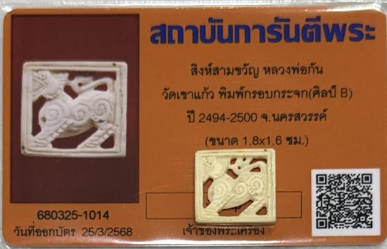 สิงห์ งาแกะ กรอบกระจก หลวงพ่อกัน วัดเขาแก้ว