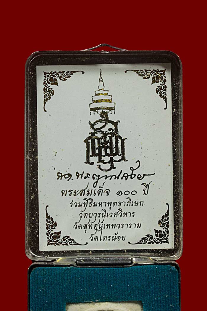 วัดใจ 2 องค์ พระสมเด็จ 100 ปี หลังแผ่นตราสัญลักษณ์ ญ ส ส. 100 ปี ติดจีวร พร้อมกล่อง |