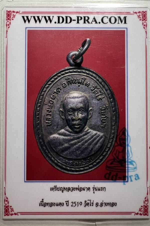 เหรียญรุ่นแรก หลวงพ่อผาด วัดไร่ จ.อ่างทอง ปี 2519 ครับ |
