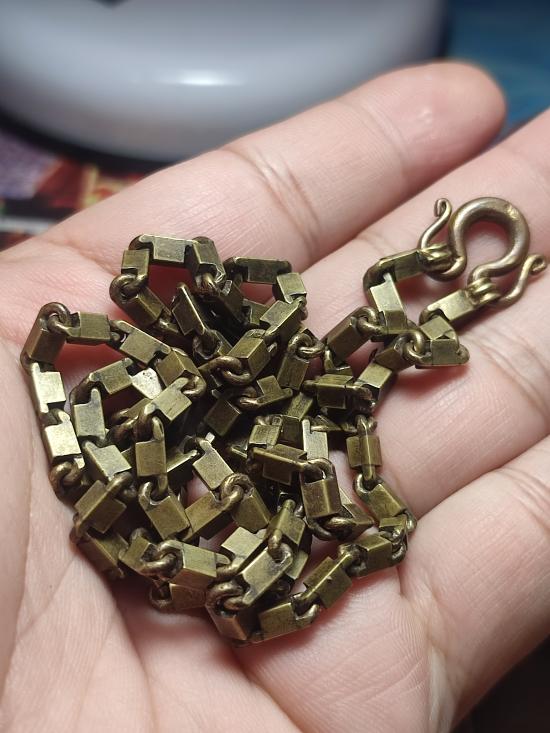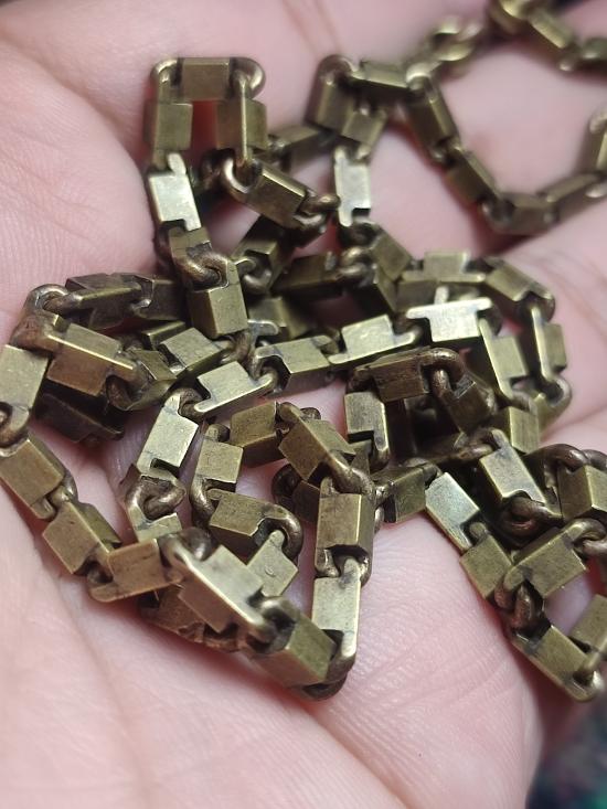 สร้อยทองเหลืองงานยุคเก่า ลายสวยไม่ขาดไม่ซ่อมใช้งานปกติ ยาว19.5นิ้ว สวมหัวได้สบายครับ |
