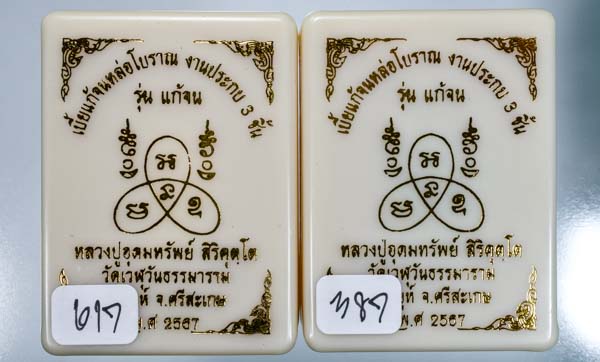งานหล่อ ประกบ3 ชิ้น ข้างในมีผงงาช้างบด มวลสาร เขย่าดูมีมวลสาร