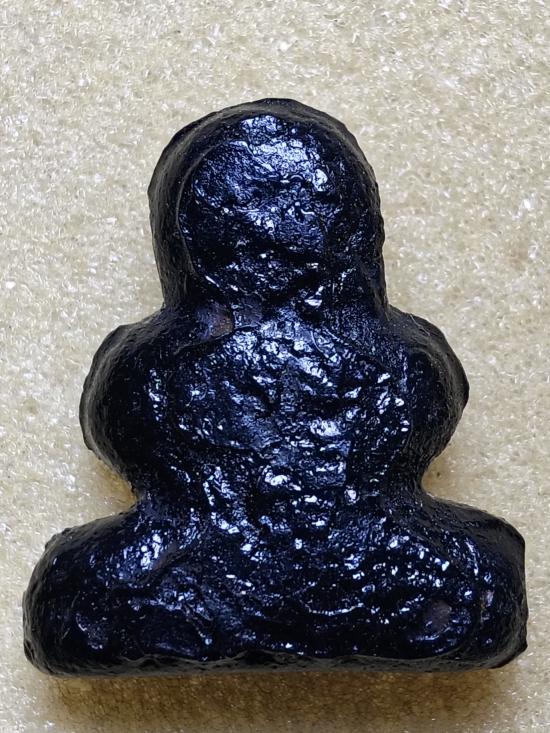 พระปิดตาเนื้อผงจุ่มรัก พิมพ์มีสะดือจุ่น ด้านข้างตะเข็บรอยประกบบล็อก ด้านล่างปาดเรียบ น่าจะสร้างย้อนยุค ล้อพิมพ์วัดสะพานสูง หลังปี2500 ไม่ทราบที่ ไม่รู้วัด |