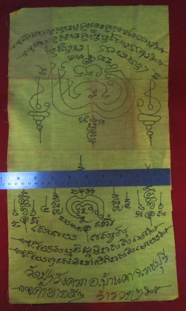 ผ้ายันต์ วัดป่าวังครก อ.บ้านคา จ.ราชบุรี จารยันต์ด้วยมือ ครับ (พระบ้าน ครับ) |