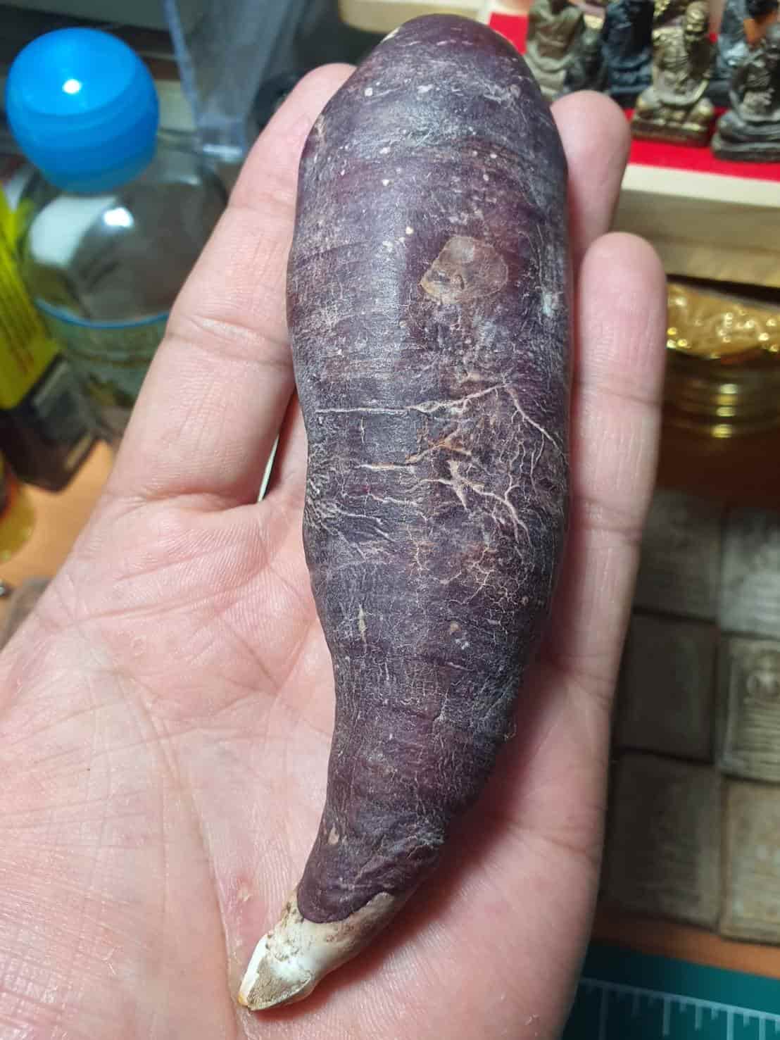 เครื่องรางเขี้ยว แกะออกจากเชือกถักจุ่มยางไม้เดิม ขนาดประมาณ 5 นิ้ว#หล่อไม่เต็มตรงตาซ้าย#พระเครื่อง เครื่องรางของขลัง เหมาๆมาลงประมูล ปิดการขายจบที่ราคาไหนราคานั้น ของดีของเก่า เชิญเคาะครับ