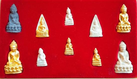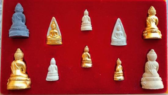 เคาะเดียวแดง.....พระชุด พระกริ่ง พระชัยวัฒน์ พุทธโสธร รุ่นไตรมาส วัดสุทัศน์ กรุงเทพ ปี 2534 (1 ชุด 10 องคฺ์) พร้อมกล่องเดิม |