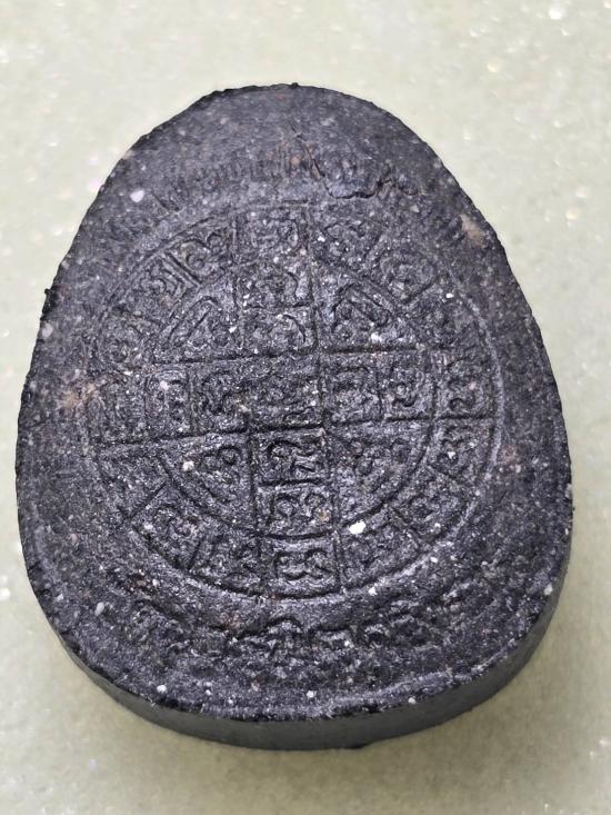 พระปิดตายันต์ดวงเล็ก ปี 2523 สมเด็จพระญาณสังวร (เจริญ) วัดบวรนิเวศวิหาร เนื้อผงใบลาน สภาพสวย ขอบตั้ง นิ้วมือติดชัด หลวงปู่โต๊ะและเกจิคณาจารย์ร่วมยุคปลุกเสกมากมาย <334> |