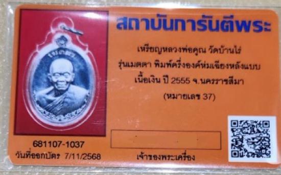 เหรียญรุ่นเมตตา หลวงพ่อคูณ วัดบ้านไร่ ปี2555 พิมพ์ห่มเฉียง เนื้อเงินหลังแบบ สภาพสวยๆ สร้างน้อยครับ |