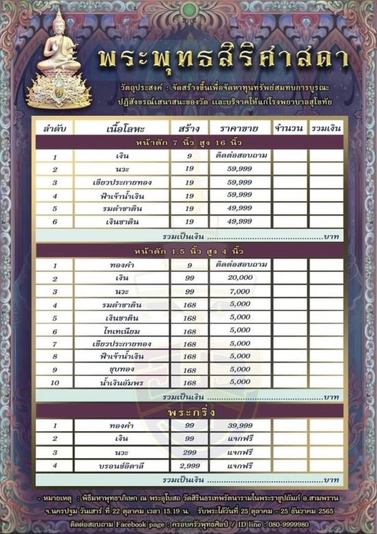 1,000..พระพุทธสิริศาสดา วัดสิรินธรเทพรัตนาราม พ.ศ.2565 เนื้อไทเทเนียม สร้าง 168 องค์ ตัก 1.5 นิ้ว มีกริ่ง สร้างน้อยหายากไม่มีหมุนเวียน (จองราคาที่วัด 5,000 บาท)