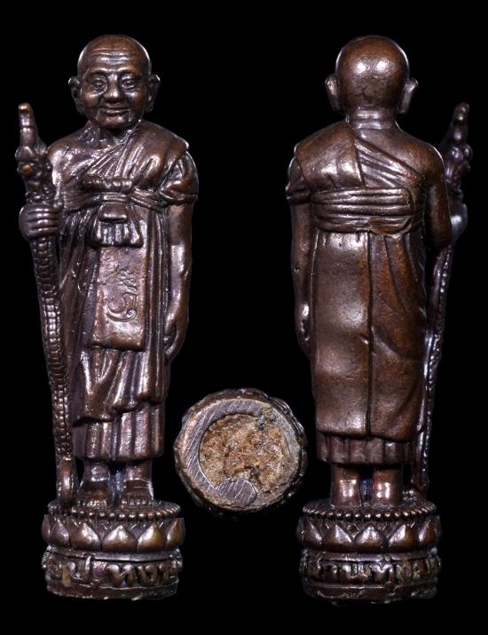 รูปหล่อยืนถือไม้เท้า อุดผงใต้ฐาน หลวงปู่หงษ์ พรหมปัญโญ สุสานทุ่งมน จ.สุรินทร์ ปี2555 แดงเคาะแรก |