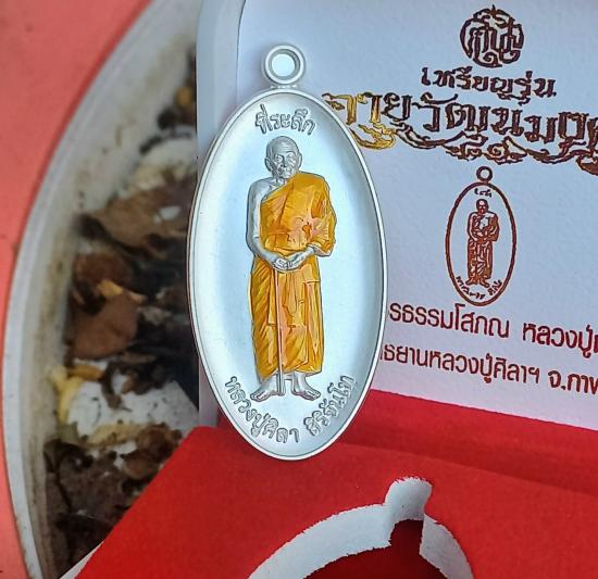 วัดใจ หลวงปู่มหาศิลา สิริจันโท(หลวงปู่ศิลา) อายุวัฒนะมงคล81 พิมพ์ยืน "เนื้อเงินลงยาจีวรเหลือง" ป้ายแดง จากราคาจอง 2,700