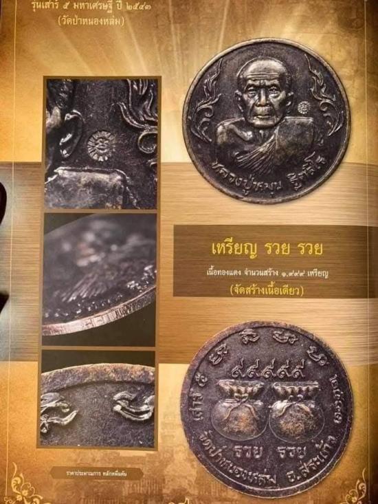 เหรียญ รวย รวย หลวงปู่หมุน รุ่นเสาร์ 5 มหาเศรษฐีพิมพ์หลังขวัญถุงเนื้อทองแดงปี 43