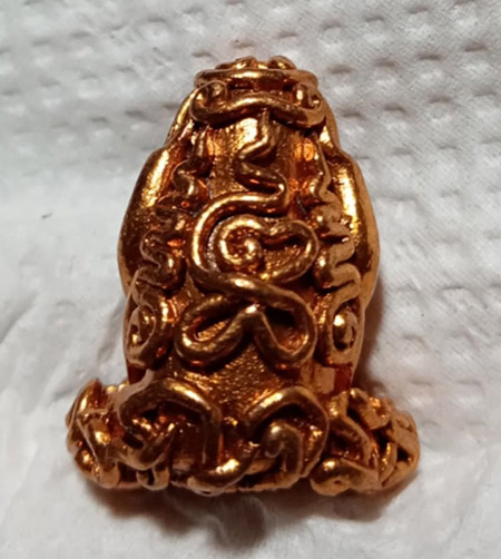 พระปิดตา แร่โคตรเศรษฐี ซึ่งผสมแร่บางม่วง และทองคำ เงิน เนื้อจึงเป็นสีทองดอกบวบ หายากมาก เพราะแร่มีจำนวนน้อย สร้างได้เท่าที่แร่มีอยู่เท่านั้น |