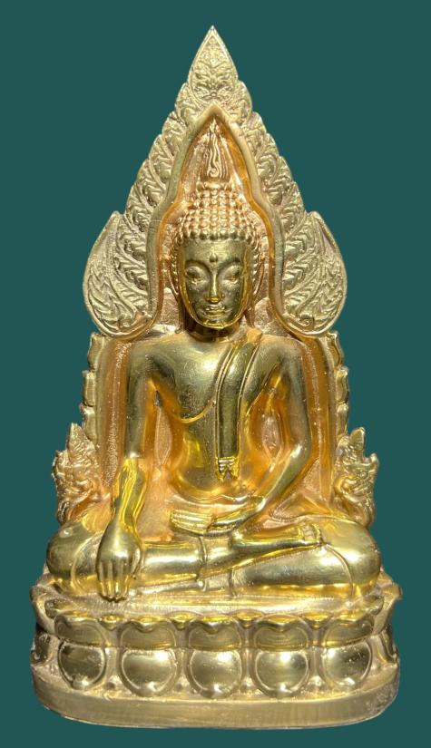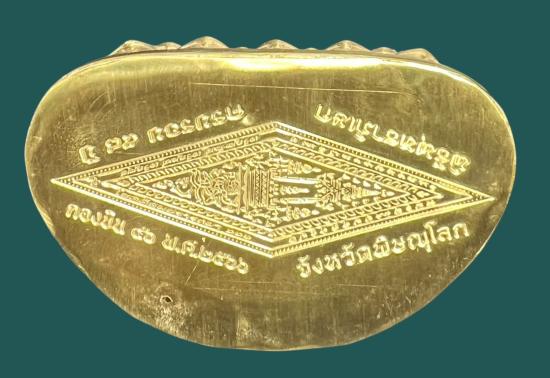 พระกริ่งบูชาพระพุทธชินราชอินโดจีน เนื้อทองเหลือง หน้าตักกว้าง 3 นิ้ว สูง 6 นิ้ว หมายเลข 232 กองบิน 46 สร้าง ปลุกเสกวัดพระศรีรัตนมหาธาตุ |