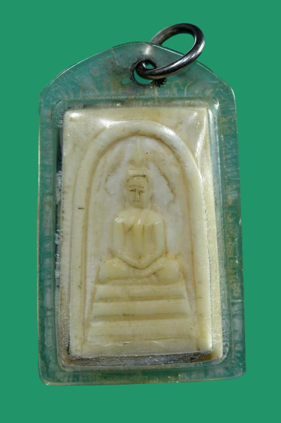 วัดใจ พระสมเด็จ เนื้องาแกะ ขนาดกว้าง 1.8 ซม. สูง 2.8 ซม. เลี่ยมพลาสติกเก่าๆ |