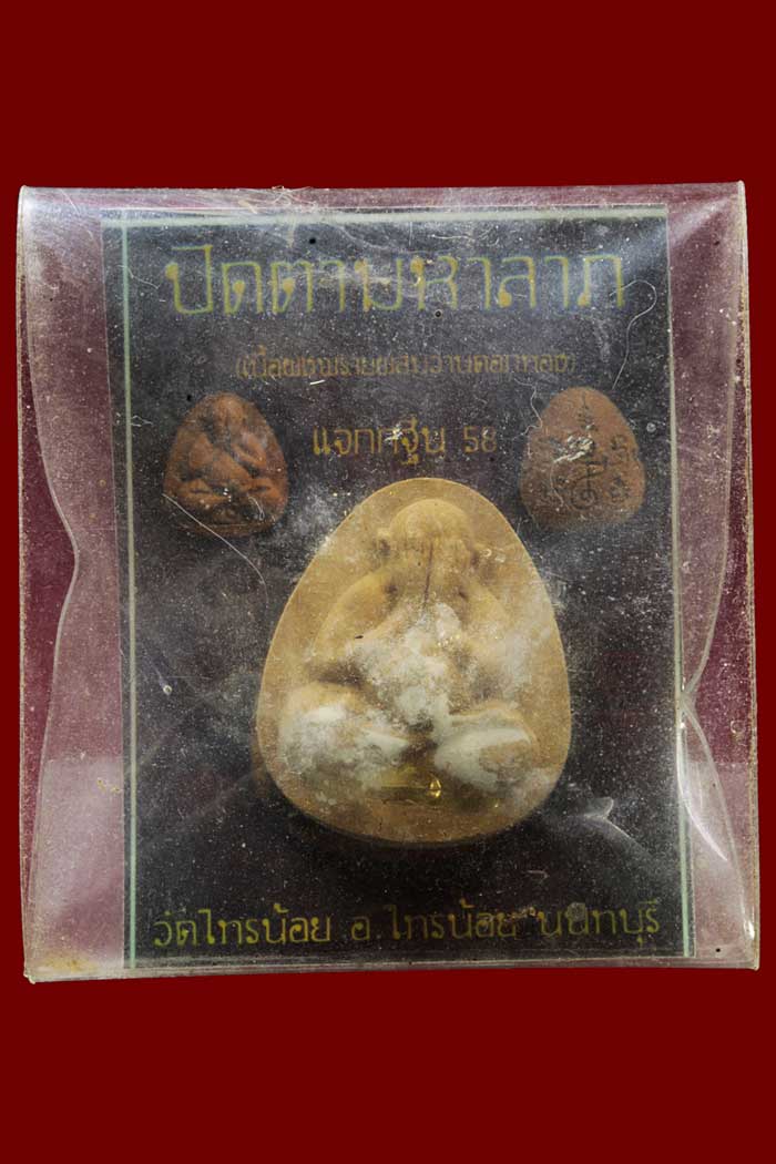 พระปิดตามหาลาภ เนื้อว่านดอกทองหลังโรยพลอย ฝังตะกรุดทองคำ สร้าง 9 องค์ มีโค๊ตทุกองค์ โดยหลวงปู่ฮก วัดราษฏร์เรืองสุข ปลุกเสกและเจิมแป้งให้เฉพาะตะกรุดทองคำ เพื่อแจกงานบุญกฐินวัดไทรน้อย ปี 58 ซองเดิม |