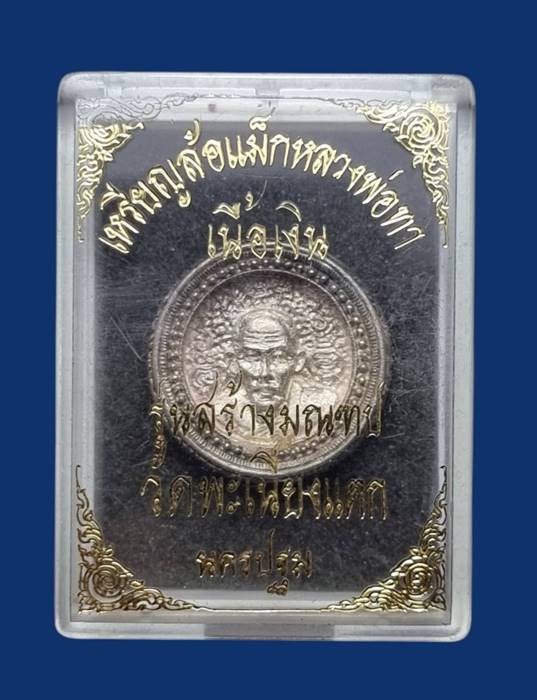 เหรียญล้อแม็ก ขอบลายไทย รุ่นสร้างมณฑป ปี 2537 หลวงพ่อทา วัดพะเนียงแตก จ.นครปฐม เนื้อเงิน สภาพสวยมาก มีกล่องเดิมให้ครับ รุ่นนี้ออกแบบสวยงามมากด้านข้างเป็นลายไทย ปลุกเสกหมู่พิธีใหญ่ |