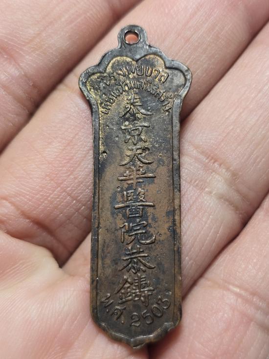 วัดใจ เหรียญพระโพธิสัตว์เจ้าแม่กวนอิม โรงพยาบาลเทียนฟ้ามูลนิธิ ปี 2503 เนื้อทองแดง หลวงปู่โต๊ะ, หลวงพ่อบ๋าวเอิง ร่วมเสก |