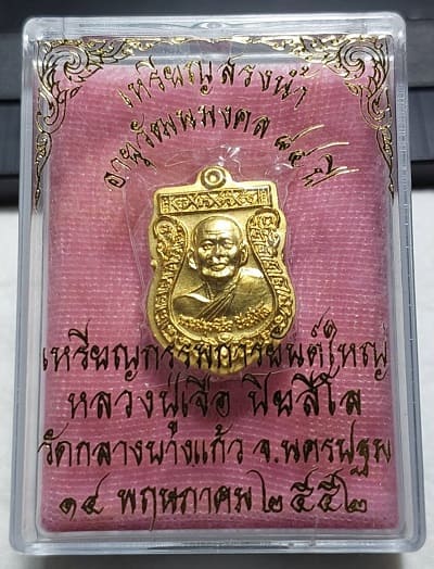 เคาะเดียวครับ$$ เหรียญสรงน้ำ อายุวัฒนมงคล 84 ปี เหรียญกรรมการยันต์ใหญ่ หลวงปู่เจือ ปิยสีโล วัดกลางบางแก้ว นครปฐม 14 พค. 2552 กะไหล่ทองพ่นทราย สวยมาก พร้อมกล่องเดิม |