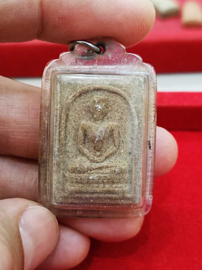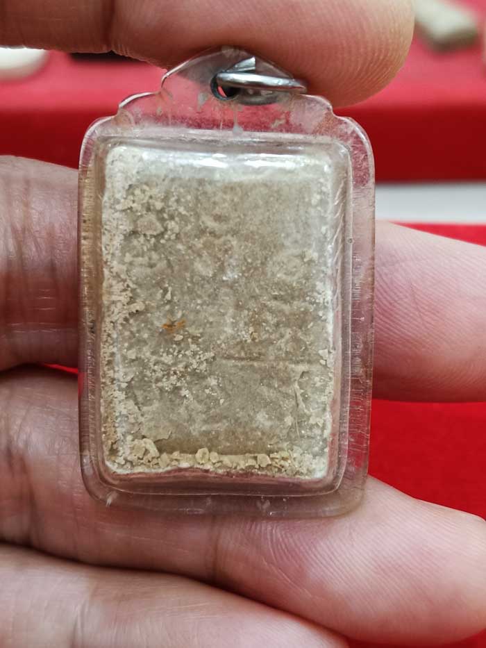 พระผงรูปเหมือนอยู่ในเลี่ยมเก่า ด้านหลังมีกระเทาะนิดหน่อยตามรูปครับ