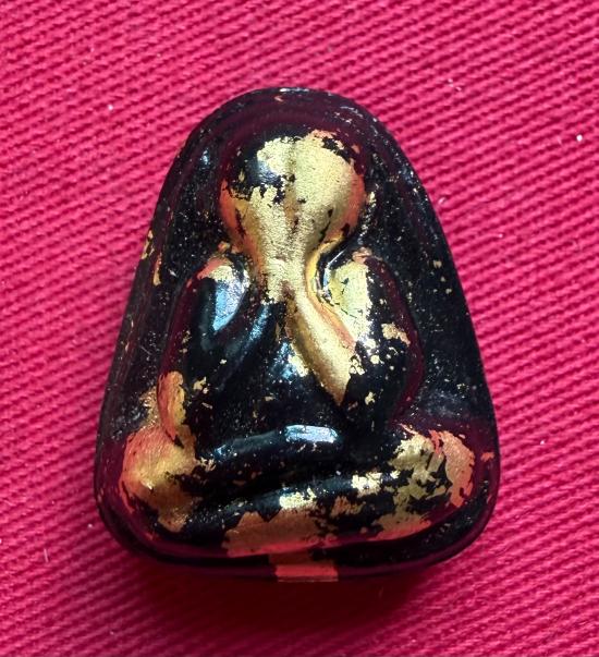 วัดใจไปเลย พระปิดตาเข่ากว้าง หลวงพ่ออุ้น วัดตาลกง รุ่น2 เนื้อผง ลูกศิษย์นำมาลงรักปิดทองเองภายหลัง |
