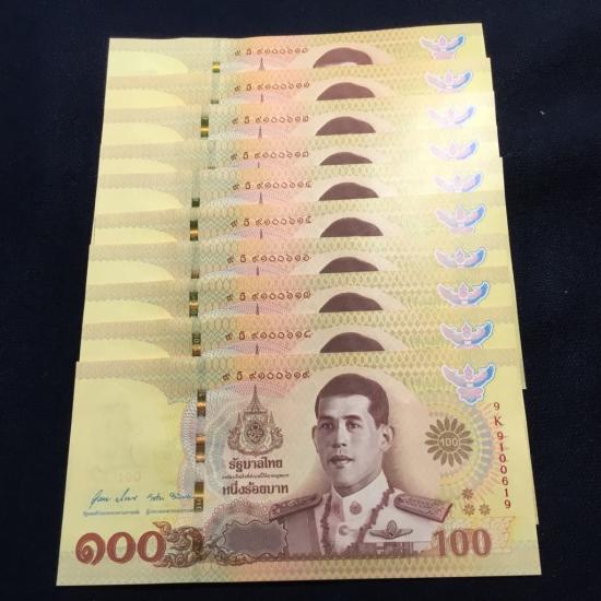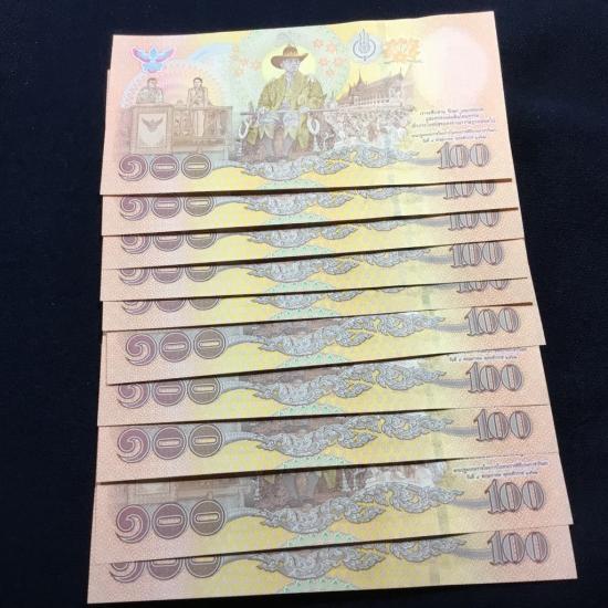 แบงค์ 100 ที่ระลีก บรมราชาภิเษก รัชกาลที่ 10 เลขเรียง รวม 10 ฉบับ