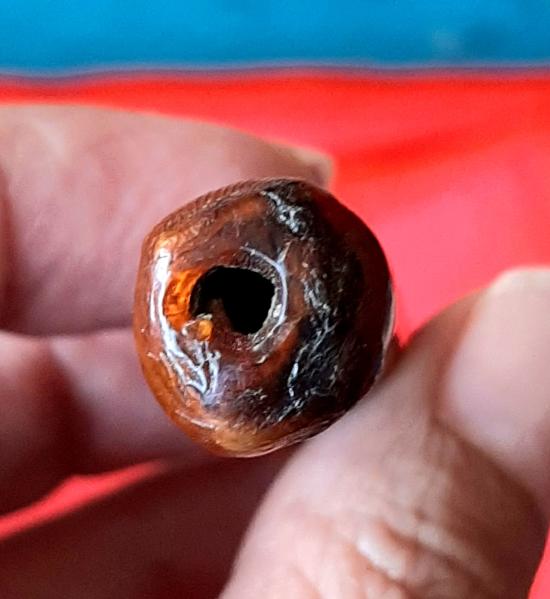 ตะกรุดหนังเสือ หุ้มด้วยพลาสติก เก่า ลนไฟ ปิดหัวปิดท้าย มีรู ไว้ร้อยเชือกแขวน ไม่ทราบที่ |
