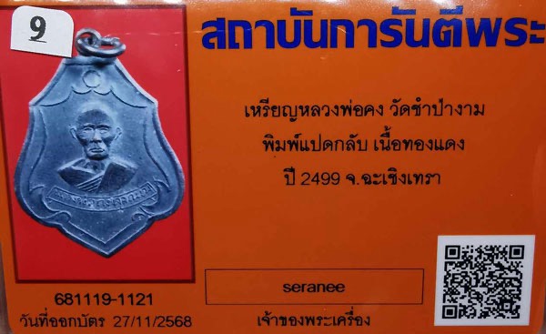 *** แดงเคาะแรก พระบ้านเหมามา *** เหรียญหลวงพ่อคง วัดซำป่าง่าม พิมพ์แปดกลับ เนื้อทองแดง ห่วงเดิม(หลังมีจาร) ปี2499