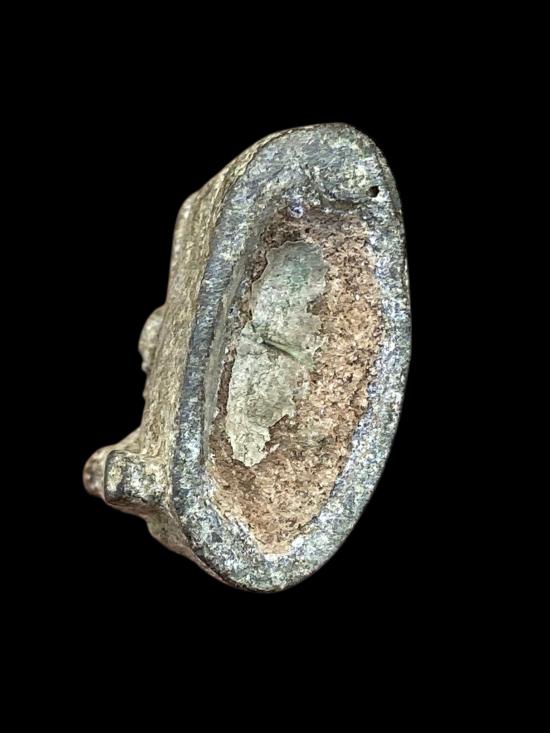 ใต้ฐานเป็นโพรงเห็นเนื้อในชัด ไม่ใช่งานหล่อสมัยใหม่ สภาพผ่านการใช้งานและกาลเวลา