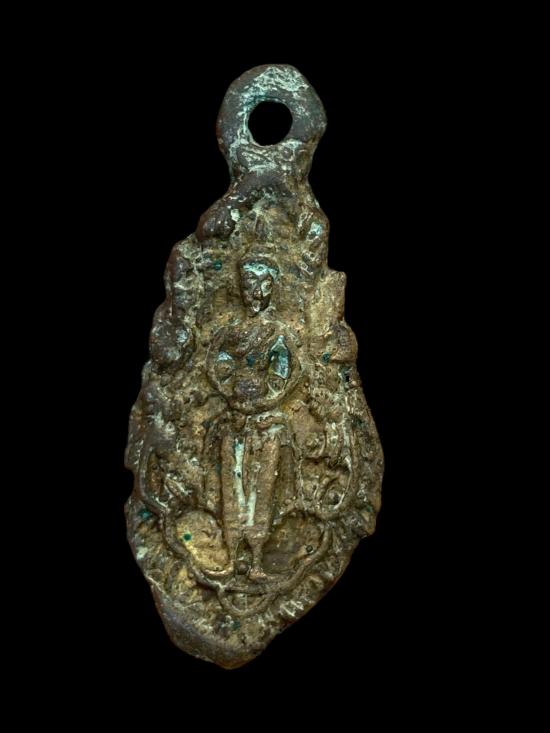 เหรียญหล่อโบราณ เนื้อโลหะผสมเก่า หล่อเต็มองค์ มีหูห่วงเดิม