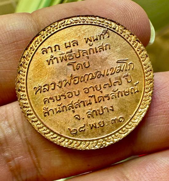เหรียญกลมสวัสดี ลาภผล พูนทวี เนื้อทองแดง หลวงพ่อเกษมปลุกเสกปี พ.ศ.2531 รุ่นนี้ถือได้ว่าเป็นเหรียญ ครบรอบ 77 ปี หลวงพ่อเกษม |