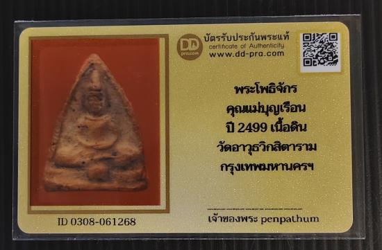 เคาะแรก >> พระโพธิจักรแม่ชีบุญเรือน เนื้อดิน ปี2499 วัดอาวุธฯ กรุงเทพฯ+บัตร |